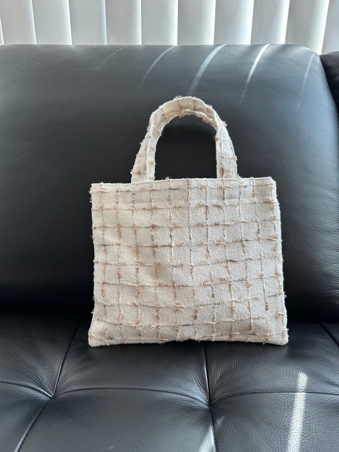 オフホワイトとゴールドラメのツイードはシンプルな色使いで華やかさがあり上品な佇まいをしています。尚且つあらゆる色のバッグとも合わせやすいホワイトベース。優秀な色です。