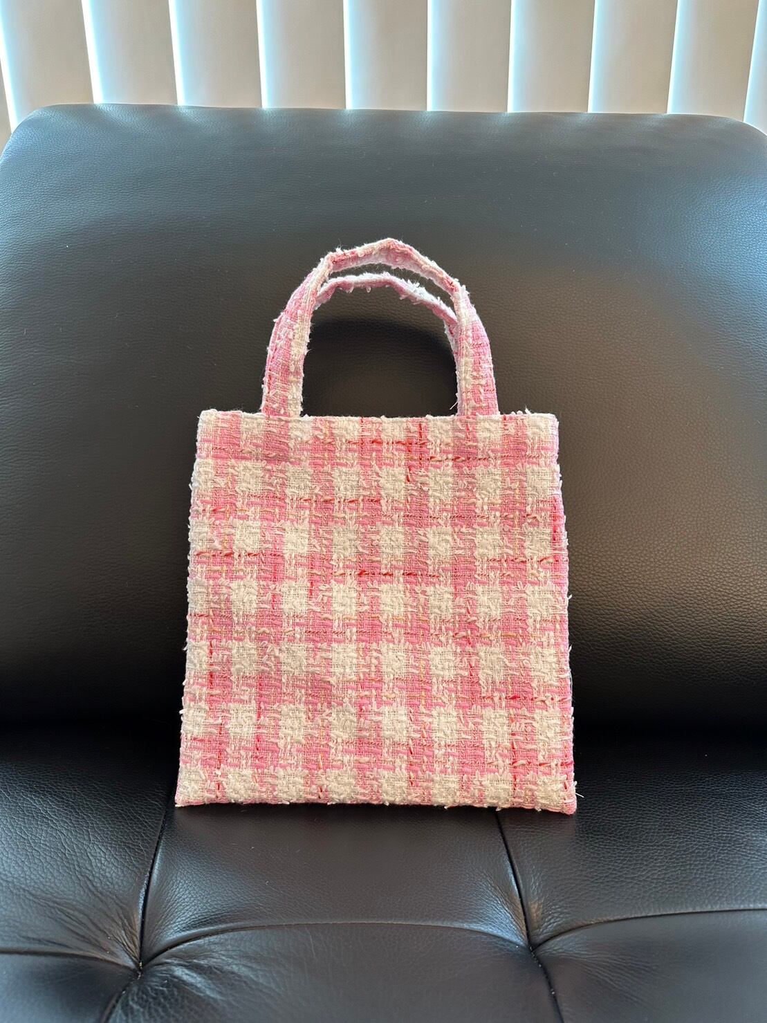 ピンクとホワイトのギンガムチェックは可愛い!の一言です。表面に出ているふさふさフリンジが更に乙女心をくすぐるデザインですよね。こちらの裏地は通常のベビーピンクじゃなくマットなスモーキーピンクにしてます。チラッと見えるところで少し甘さを抑えてます。