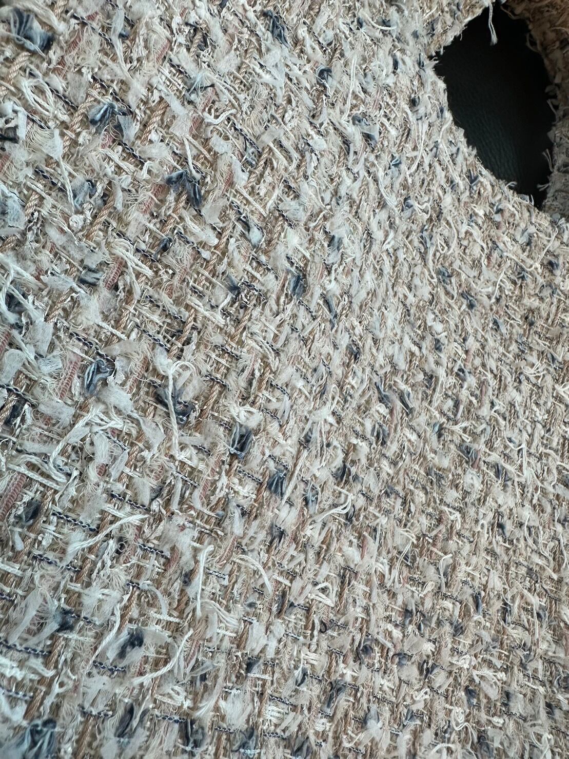 ※お洗濯について。ツイードと裏地シャンタン生地の性質上、濡らして乾かしたら若干縮みます。装飾があるファンシーツイードの為余計に風合いが変わる恐れがあります。どうしても汚れた場合は、ドライクリーニングをおすすめします。