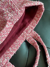 ※お洗濯について。ツイードと裏地シャンタン生地の性質上、濡らして乾かしたら若干縮みます。装飾があるファンシーツイードの為余計に風合いが変わる恐れがあります。どうしても汚れた場合は、ドライクリーニングをおすすめします。