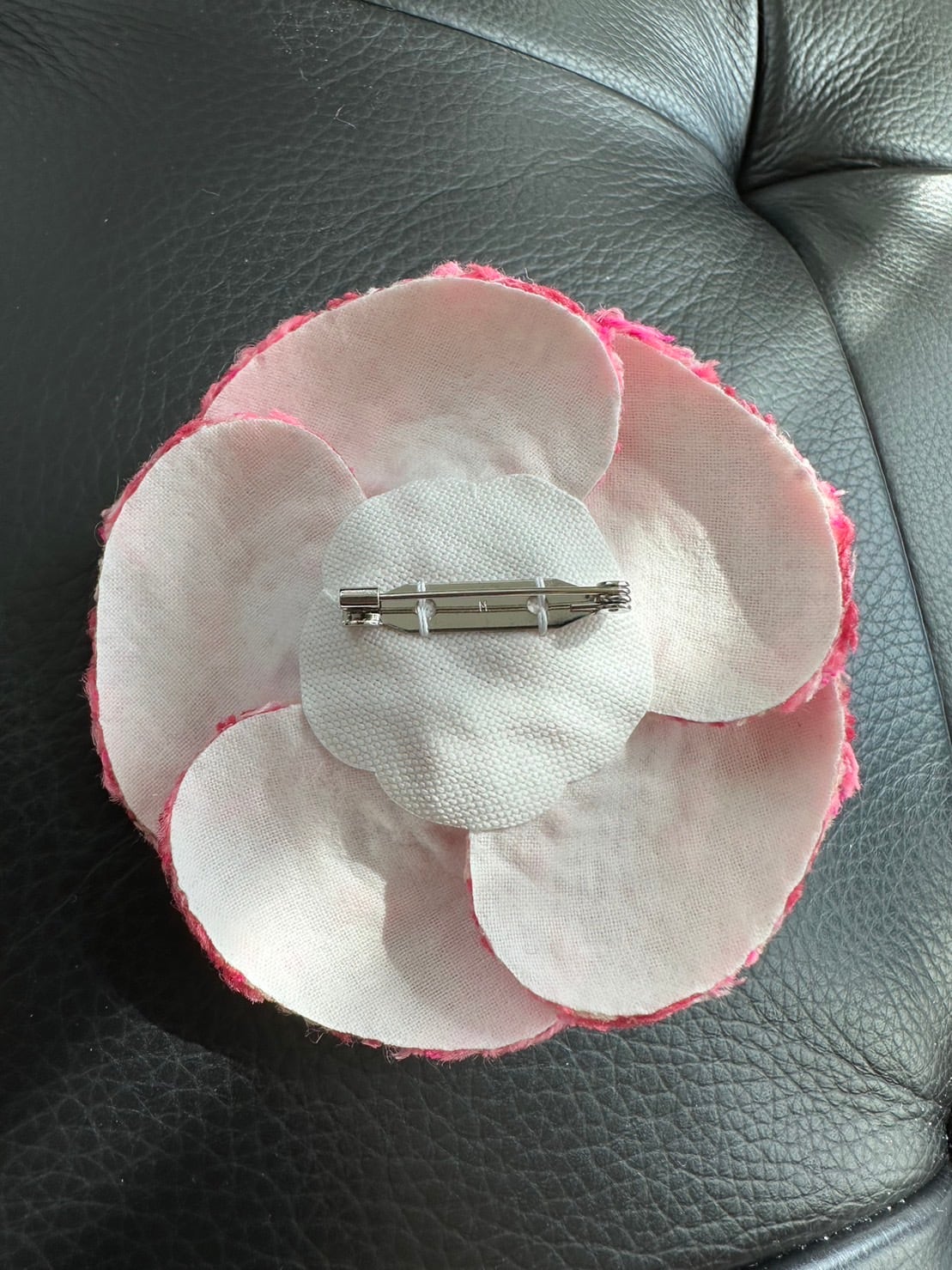 しっかりと立体的なカメリアはメゾンツイードと重なり合うことで高級感が溢れています。