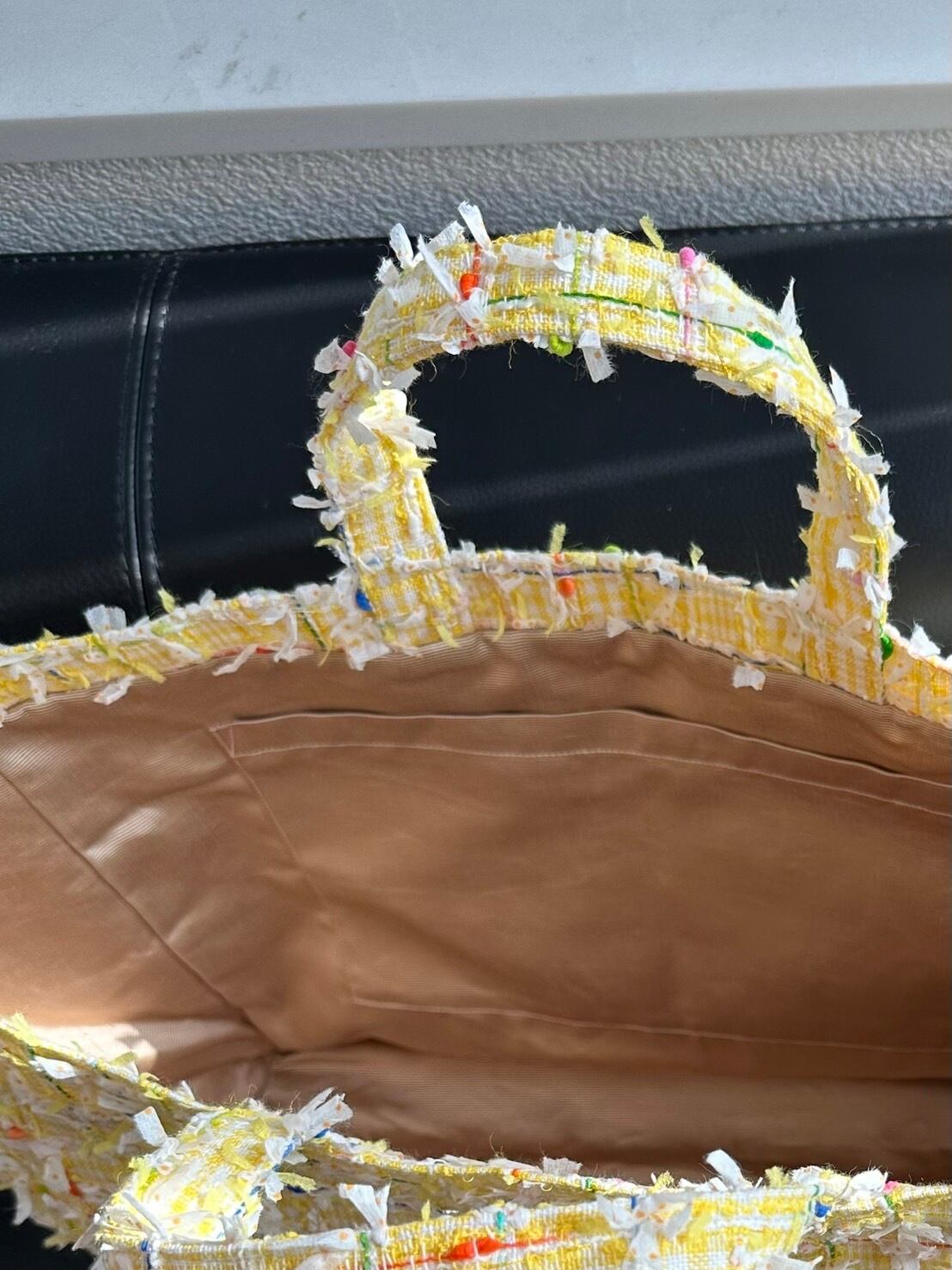 ※お洗濯について。ツイードと裏地シャンタン生地の性質上、濡らして乾かしたら若干縮みます。装飾があるファンシーツイードの為余計に風合いが変わる恐れがあります。どうしても汚れた場合は、ドライクリーニングをおすすめします。