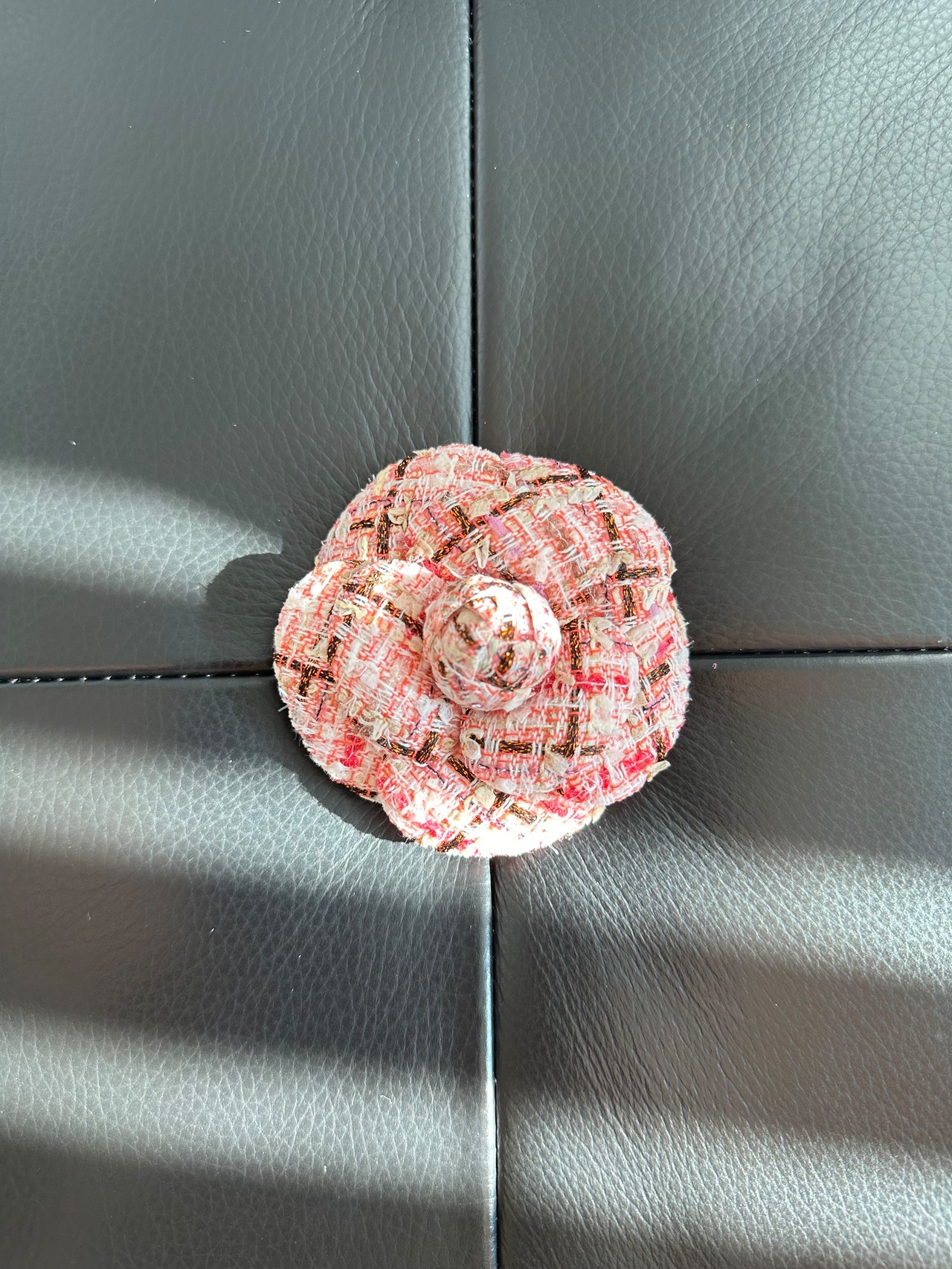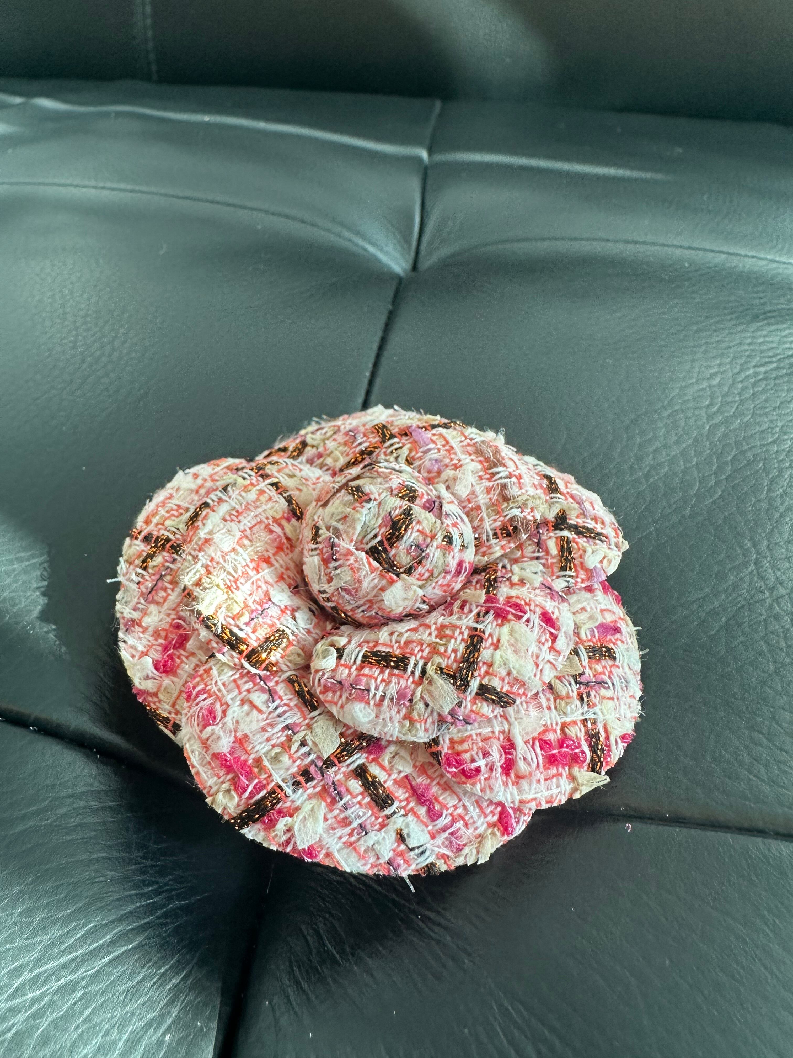 しっかりと立体的なカメリアはメゾンツイードと重なり合うことで高級感が溢れています。